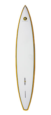 ノーズも改良され、ボリュームがつきダウンウィンド中もノーズが沈みにくい。静水では適度に水を切ってくれる。カーボン製。