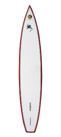 レース用フェザーコアボード。その独特のノーズ形状は静水において水を切るようにグライドしていきます。